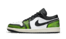The must-have Air Jordan 1 Low is back in an electric colorway, reserved for little feet. The Air Jordan 1 Low Electric Green features a white leather upper sublimated by a black leather side Swoosh, but above all by lime green leather overlays. These inserts give a crackled effect to the green hue, revealing a black background. A distressed midsole and classic black outsole complete the design. A trendy model, this new iteration of the AJ1 Low will punctuate any outfit. SKU: DO8244-003 / DN3705-003 Release date: July 2022 Colorway: BLACK/ELECTRIC GREEN/WHITE/SAIL
