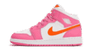 The Air Jordan 1 Mid Pinksicle Safety Orange unveils a white leather base complemented by pink leather overlays. Several orange details appear on the side swoosh and the Jumpman logo on the tongue. A white sole completes the colorful design! SKU: DX3240-681 Release date: 2022 Colorway: DEEP PINK/WHITE/ORANGE