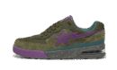 The A Bathing Ape Bape Road Sta Dark Green Suede features a premium khaki green suede upper, with the Bape Star branding in purple. This same touch of color is repeated on the front of the pair. Finally, the speckled gray sole features an air bubble under the heel for comfortable cushioning. SKU: 1I30-291-006 Release date: February 2022 Colorway : DARK GREEN/PURPLE/GREY