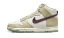 Nike's historic high-top, the Dunk High returns in a sleek new colorway. The Nike Dunk High White Tan and its vintage allure are presented through a white grained leather base. Smooth beige leather overlays add a light touch of color, as does a brown patent leather Swoosh. This silhouette rests on a Nike Grind sole composed of a white midsole and a mint green outsole, in harmony with the fabric lining. A trendy model always accompanied by its retro look, the Dunk High presents a new variation perfect for back-to-school. SKU: DX8956-001 Release date: August 2022 Colorway: LIGHT BONE/ALLIGATOR/LIMESTONE/DARK BEETROOT