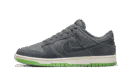 To celebrate Halloween, Nike's creative teams unveil a dark version of the legendary Dunk! The Nike Dunk Low Swoosh Shadow Iron Grey features a grey leather base, enhanced by suede overlays. A Double Swoosh adorns the side panels of the iconic lowtop. Its distinctive feature is a white sole with a fluorescent green Nike Grind outsole. A terrifying iteration of the Dunk Low that promises to be a must-have this season! SKU: DQ7681-001 Release date: October 2022 Colorway: IRON GREY/PHANTOM/GHOST GREEN
