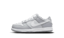 A trendy silhouette, the Nike Dunk Low comes in a new variation in shades of gray, especially for children. This Nike Dunk Low Two-Toned Grey Child (PS) features a light gray leather base, topped with slightly darker leather inserts. The Swoosh is finished in an immaculate hue, matching the midsole. SKU: DH9756-001 Release date: April 2023 Colorway: PURE PLATINUM/WHITE-WOLF GREY