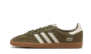 A timeless model originally designed for soccer, the Samba is back in a streamlined colorway. The adidas Samba OG Focus Olive Gum features an olive-colored nylon base, accompanied by a tonal mudguard. White details such as "Samba" on the back of the silhouette sublimate the upper, as do the three stripes and heel tab. To round things off, a gumsole is fitted underneath. More respectful of the environment, this silhouette contains at least 20% recycled materials. SKU: IE3440 Release date : January 2024